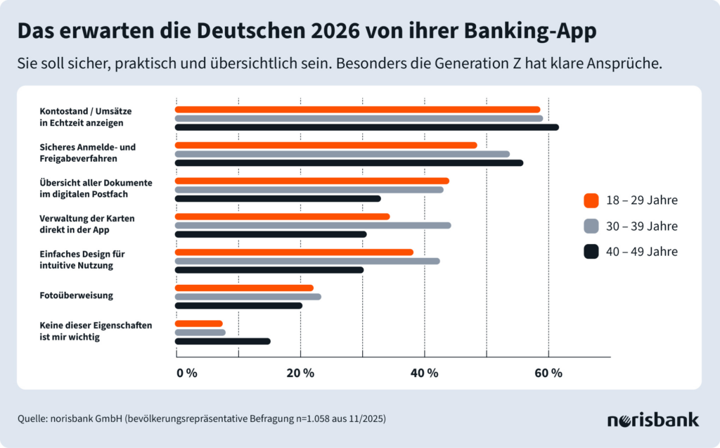 Mit der wachsenden Nutzung steigen jedoch auch die Erwartungen. Im vergangenen Jahr hat die Mehrheit der Deutschen regelmäßig auf digitale Services zurückgegriffen und möchte dies auch 2026 fortsetzen. Sicherheit, Transparenz und eine einfache Handhabung sind für viele wichtiger denn je. Brosch: „Die Zukunft des digitalen Bankings wird aktiv von Nutzer*innen mitgestaltet, die genau wissen, was sie brauchen. Die norisbank unterstützt sie dabei mit praktischen, durchdachten Lösungen für den Alltag, die das Banking noch leichter und sicherer machen.“