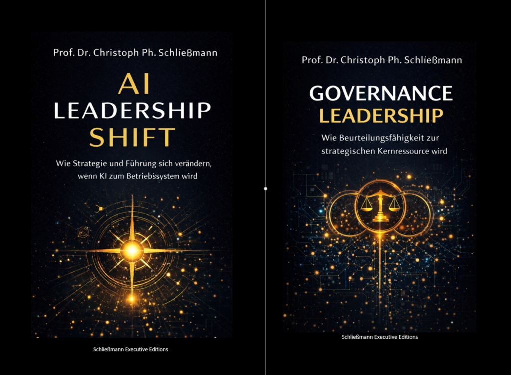 Mit „AI Leadership Shift – Wie Strategie und Führung sich verändern, wenn KI zum Betriebssystem wird“ legt Prof. Dr. Christoph Ph. Schließmann ein bewusst kompaktes Basisbuch vor: ein Executive Briefing für Geschäftsführung und Vorstand, das KI als strategischen Strukturbruch beschreibt – nicht als Tool-Thema. Die Vertiefung folgt mit „Governance Leadership – Wie Beurteilungsfähigkeit zur strategischen Kernressource wird“: ein Operating Playbook für Organisation, Steuerung und Auditfähigkeit.